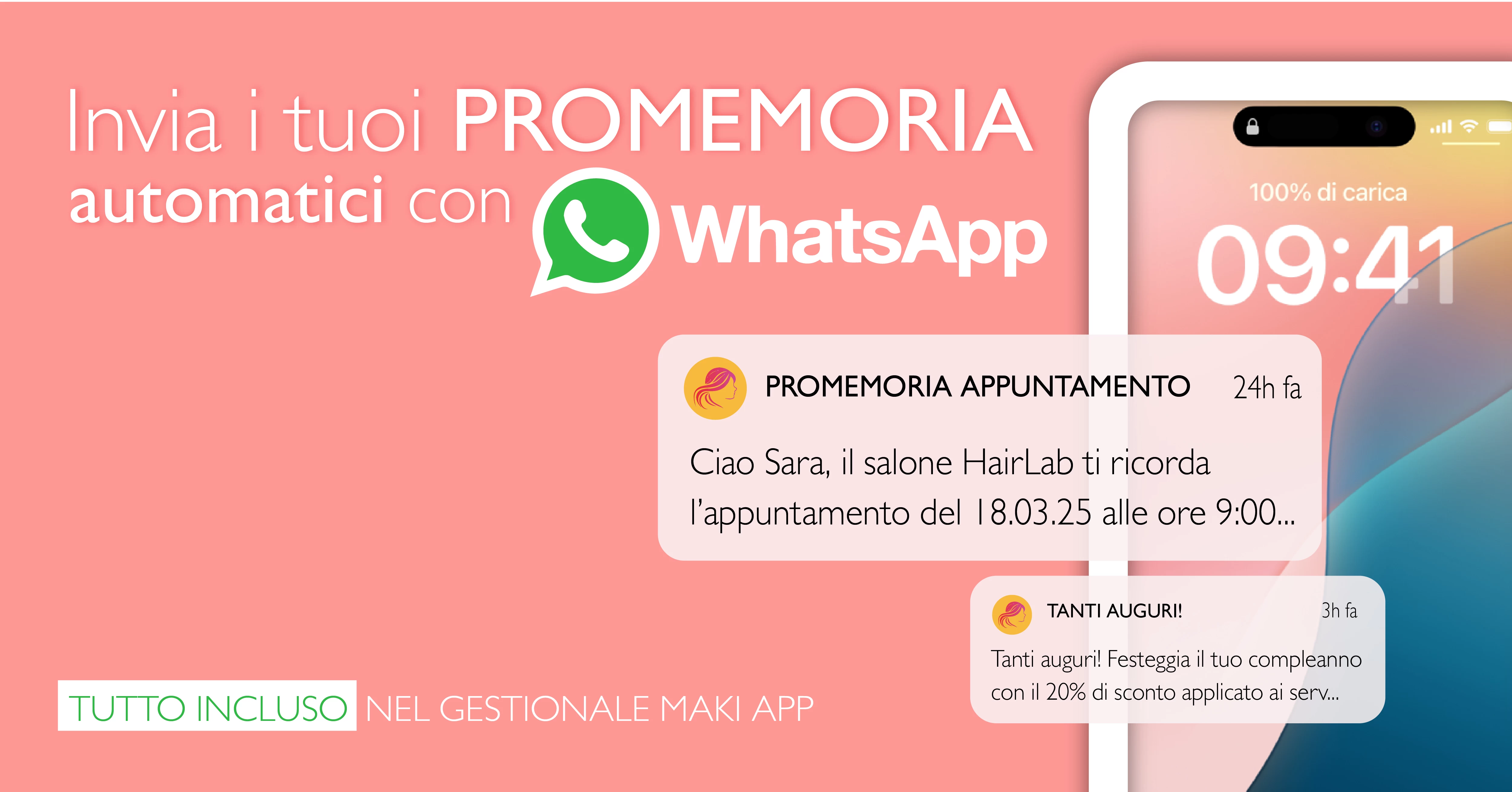 Fare WhatsApp Marketing può rivelarsi una strategia davvero vantaggiosa per la tua attività. Puoi aumentare le vendite e le prenotazioni nel tuo Salone, avendo un contatto diretto con i clienti. I veri vantaggi? Puoi creare un rapporto personale con i tuoi clienti, aumentandone così la fidelizzazione, senza dover sottrarre ore di lavoro preziose nel tuo Istituto di Bellezza per inviare singoli messaggi di Promemoria degli Appuntamenti. Tramite WhatsApp Business i Remainder sono automatizzati. Tu dedicati ai tuoi clienti, al resto ci pensa Maki App!