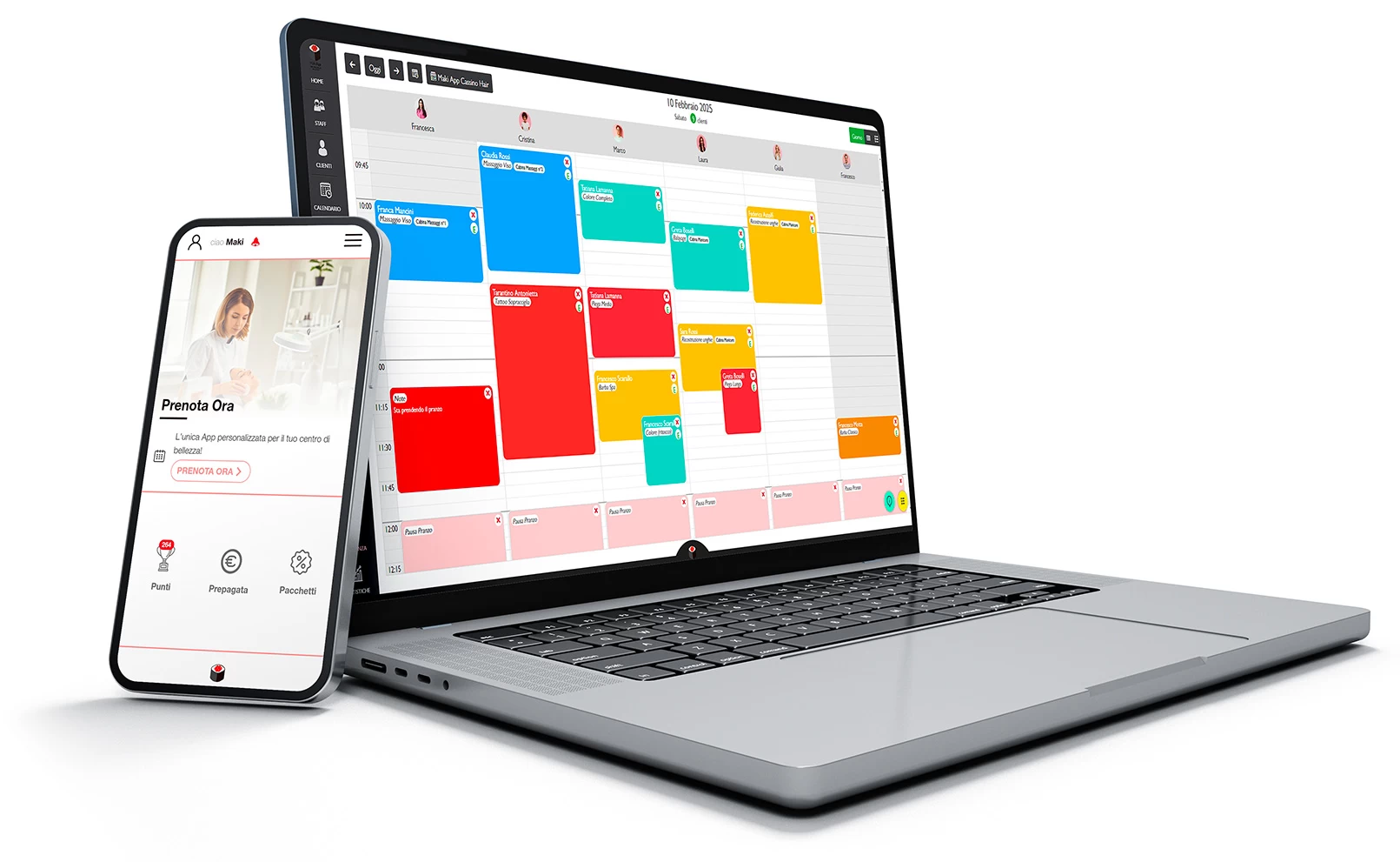 Maki App è il software completo e facile da utilizzare dedicato alle strutture che operano nel settore della bellezza della persona: Parrucchieri, Hair Stylist, Centri Estetici e Nails Bar.